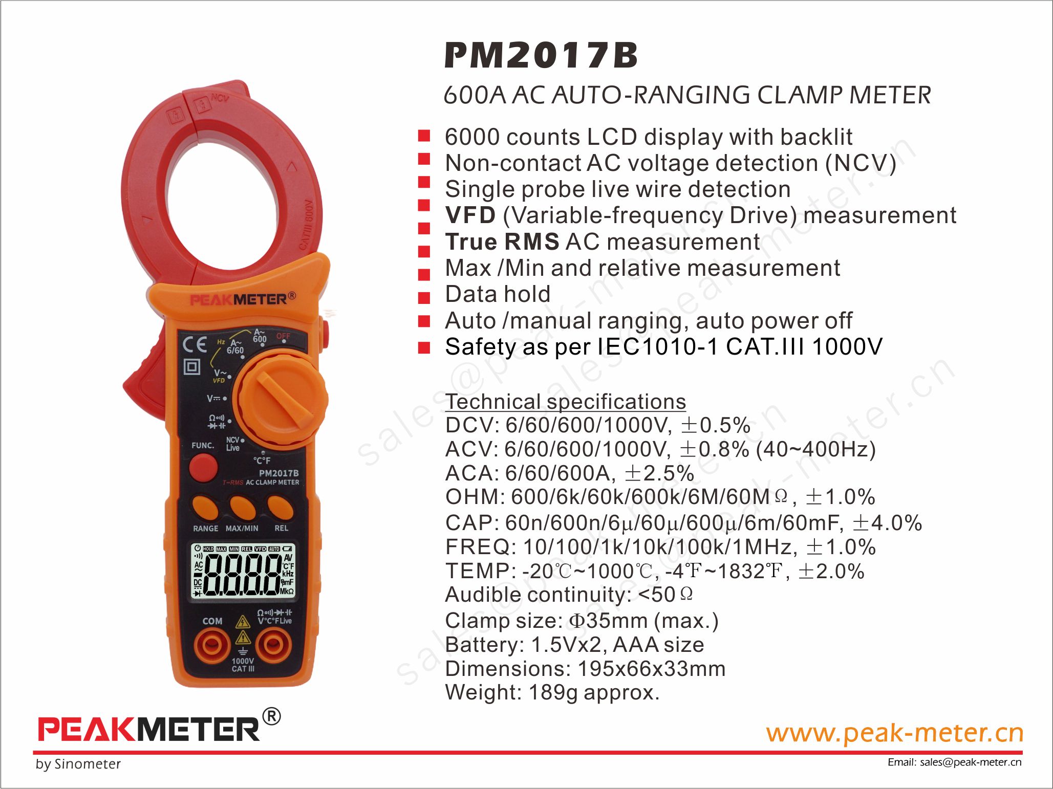 1000A AC AUTO-RANGING CL AMP METER